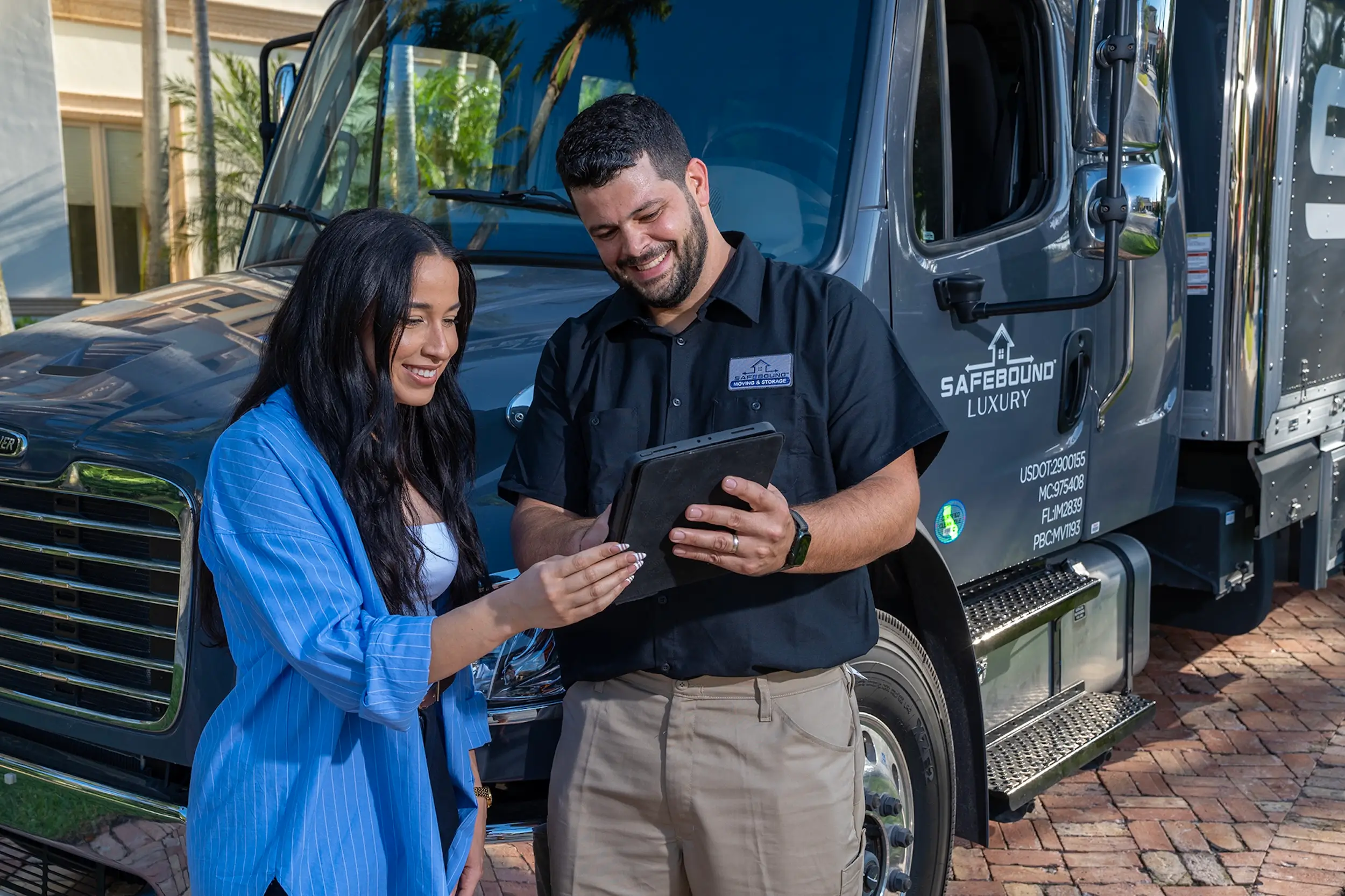 Licensed (USDOT 2900155 | MC MC00975408 | FL IM2839), insured ($750,000), and certified: BBB Accredited, ProMover Certified, AMSA Member, Forbes Featured. Safebound Moving & Storage serves Florida and the continental United States. Verify credentials at fdacs.gov or safer.fmcsa.dot.gov